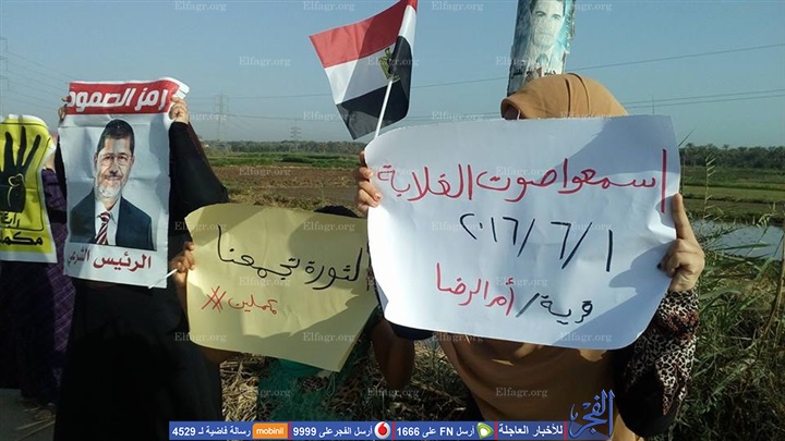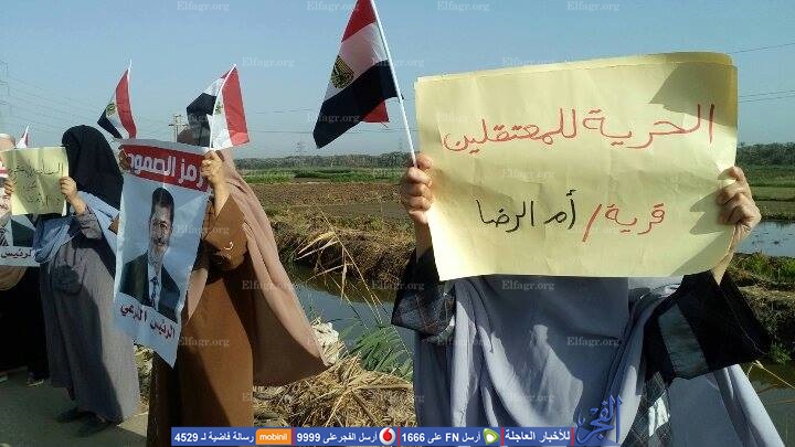 نظم أعضاء جماعة الإخوان المحظورة بمحافظة دمياط، اليوم الأربعاء، سلسلة بشرية بقرية أم الرضا على طريق دمياك-جمصة الزراعي، رافعين خلالها صور للرئيس المعزول محمد مرسي، وأعلام مصر، وشارات رابعة العدوية الصفراء،مطالبين بالإفراج عن ذويهم المحبوسين،رافعين لافتات ضد الدولة وأجهزتها.