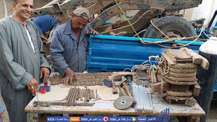 وبتفتيش الورش الخاصة بهم، تبين وجود سيارة ماركة «ماتركس بدون لوحات معدنية» مجهولة المصدر، وتم تجميعها بطريقة غير قانونية، كما تم ضبط سيارة «لانسر» بدون لوحات معدنية مجهولة المصدر وتم تجميعها بطريقة غير قانونية، وكذا عدد 5 شاسيهات بها لحامات وارقام تم دقها بمعرفتهم، وسيارة نقل (ونش) تلاعب المتهمون في الاجزاء الجوهرية لها.