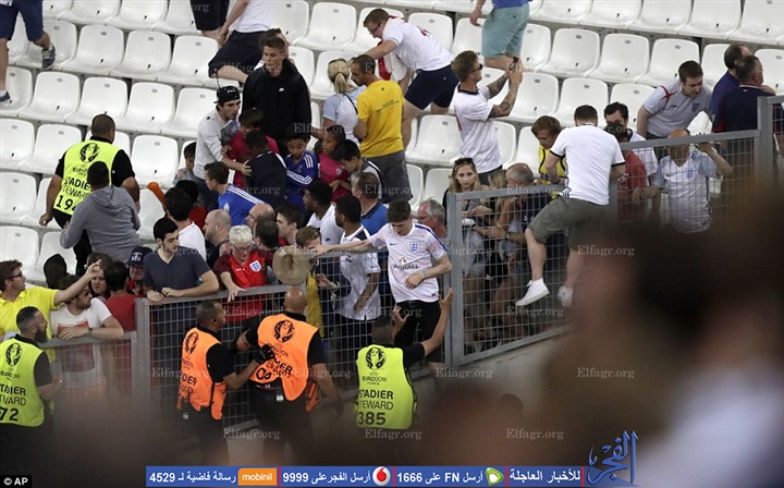 الجماهير الروسية تُعلن الحرب على نظيرتها الإنجليزية (صور) الفجر الرياضي الأحد 12/يونيو/2016 - 12:02 ص 6/12/2016 12:02:00 AM الفجر الرياضي اشتباكات روسيا وإنجلترا يورو 2016 مباراة روسيا إنجلترا جماهير روسيا جماهير إنجلترا اشتباكات