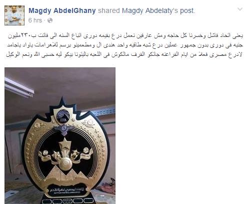 وقال عبد الغني عبر حسابه على فيس بوك:"يعنى اتحاد فاشل