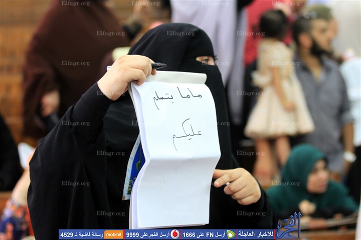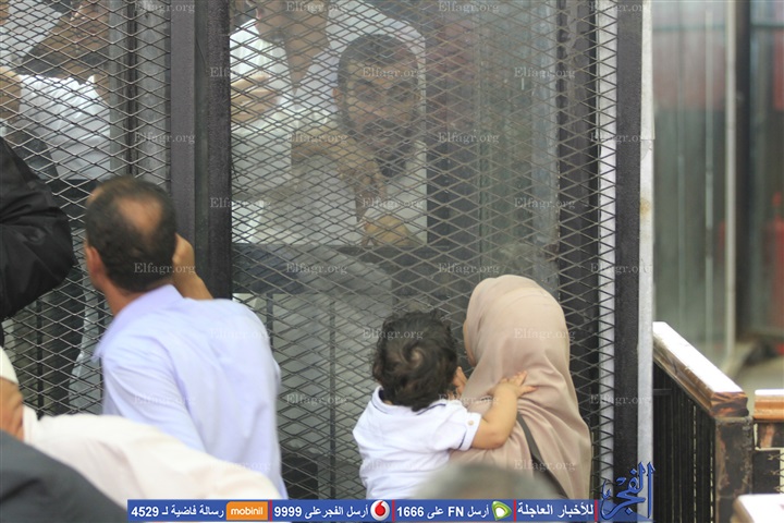 وحرص أهالى المتهمين على توجيه التحية إلى ذويهم المودعين داخل القفص الزجاجى وإطلاق الزغاريد، فيما تبادل الطرفان الإشارة بينهما، فى الوقت الذى أشهروا خلاله الأهالى عددًا من اللافتات لمؤازرتهم، ومن بينها لافتات مدون عليها" شدوا حيلكم، ماما بتسلم عليكم، خالد بيقرأ المصحف"، وهو ما قوبل بالتحية الحارة من جانب المتهمين، تعبيرًا عن فرحتهم البالغة لحضور أهاليهم.