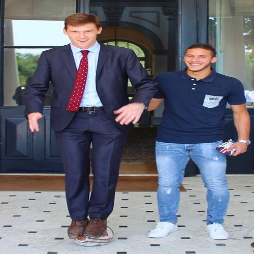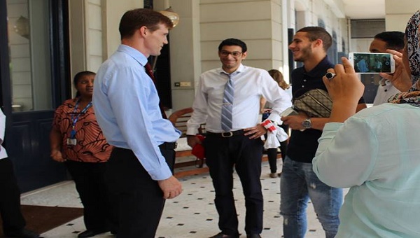رحب السفير البريطاني بالقاهرة، جون كاسن، بلاعب الأهلي رمضان صبحي، بالتقاط الصور التذكارية معه، حيث داعبه وقام بالوقوف على الكرة، وذلك خلال تواجد رمضان بالسفارة.