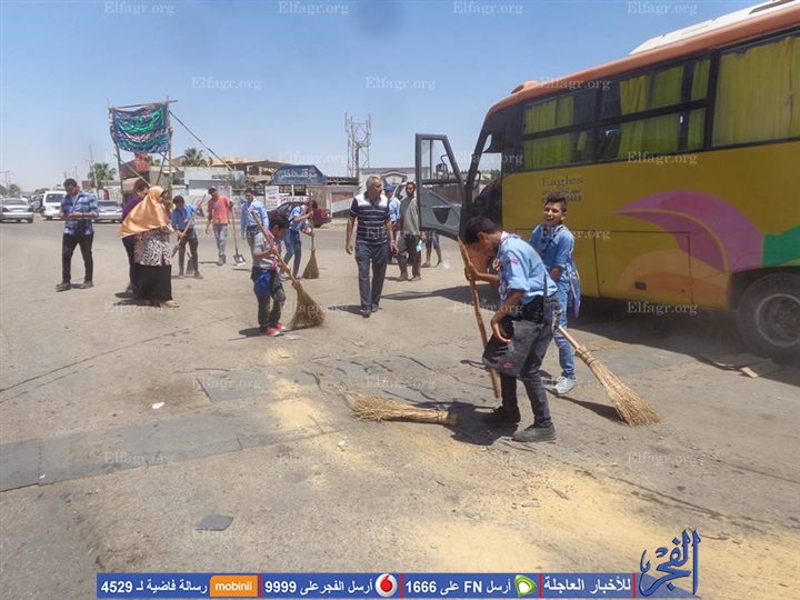 أما في حي فيصل فكانت المشهد مختلفا، مع كل عامل كان يرفع القمامة كان هناك كف رقيق وصغير لـ " كشاف " يشاركه فى التنظيف، وايدي ترفع الفأس لزراعة وتشجير ميدان العوايد يتحول من لون الحجر الباهت الى لون أخضر.