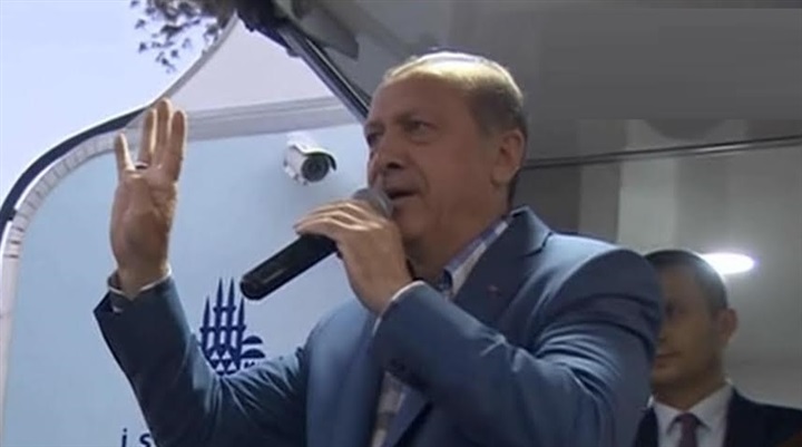 "أردوغان" يرفع شارة رابعة للمرة الثانية خلال كلمته للشعب التركي (صور)