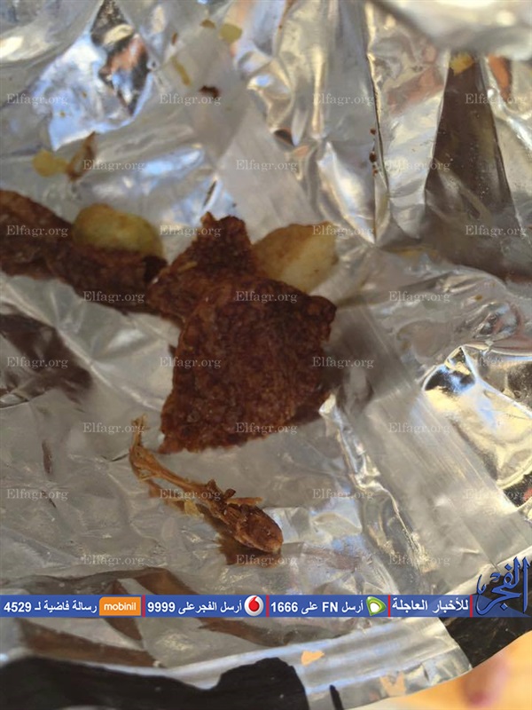عن الخبز بسندوتشات أحد المطاعم الشهيرة، حيث تظهر الصورة وجود دودة داخل الخبز، كما