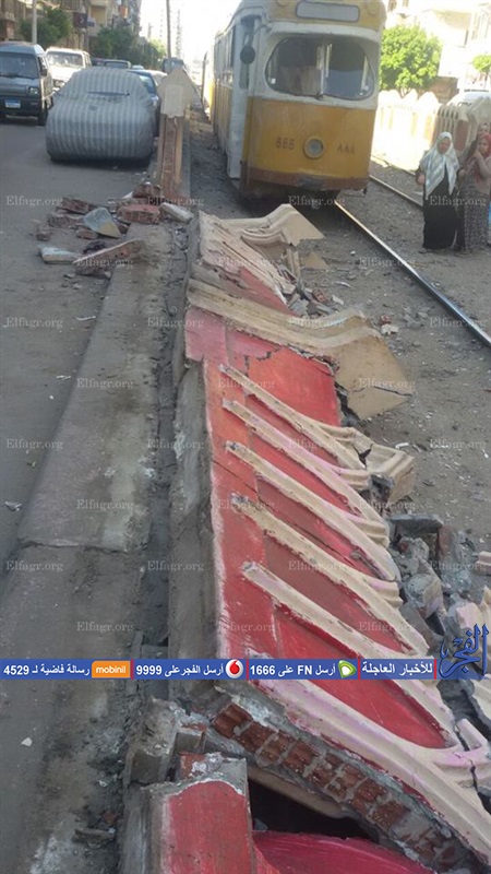 تعطل حركة ترام غرب الإسكندرية عقب انهيار سور خرساني