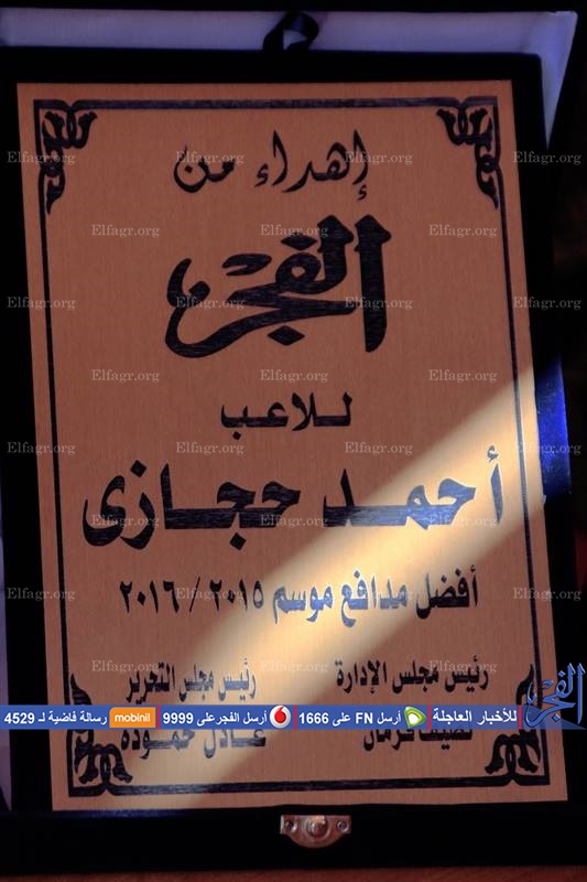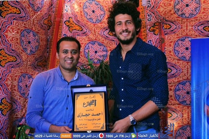 أحمد حجازى تميمة الدفاع فى منتخب مصر والأهلى .. الذى أدى فى القلعة الحمراء موسماً افتتحه بكأس السوبر واختتمه بدرع الدورى الذى كان غائبا عن قلعة الجزيرة وتحدوه طموحات كأس مصر وإفريقيا ومن بعدهما كأس العالم للأندية .. قليل اللقاءات نادر التصريحات زاهد اللقطات لكنه رغم ذلك شرف «الفجر» بحضور ندوته الدورية والتى استحق خلالها تكريماً بدرع أفضل مدافع فى مصر والتى فتح قلبه لنا فيها للرد على كل تساؤلاتنا فكان هذا الحوار .