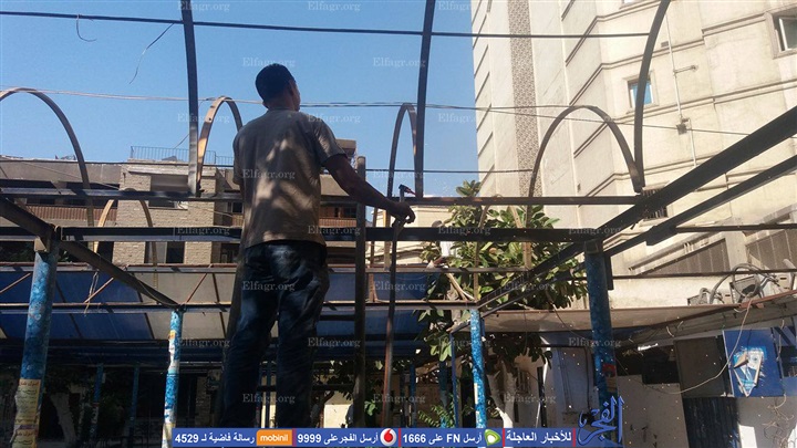 وكان القطاع الهندسي بوزارة الإنتاج الحربى مهمته إزالة المبنى كاملًا وتمهيد الأرض لبدء البناء بعد إزالة كافة المخلفات، فى حين بدأ العمل فى إزالة التندات والأعمدة الحديدية بحديقة النقابة.