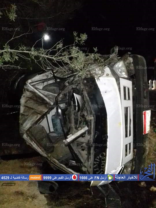وكان حادث تصادم قد وقع بين أتوبيس سوبر جيت وسيارة فنطاس بمنطقة سملا بالكيلو 10 طريق "مطروح - الإسكندرية"، ما أدى إلى مصرع شخصين وإصابة 33 آخرين خرج منهم 31 بعد تحسن حالتهم وباقي حالتين تحت الملاحظة.