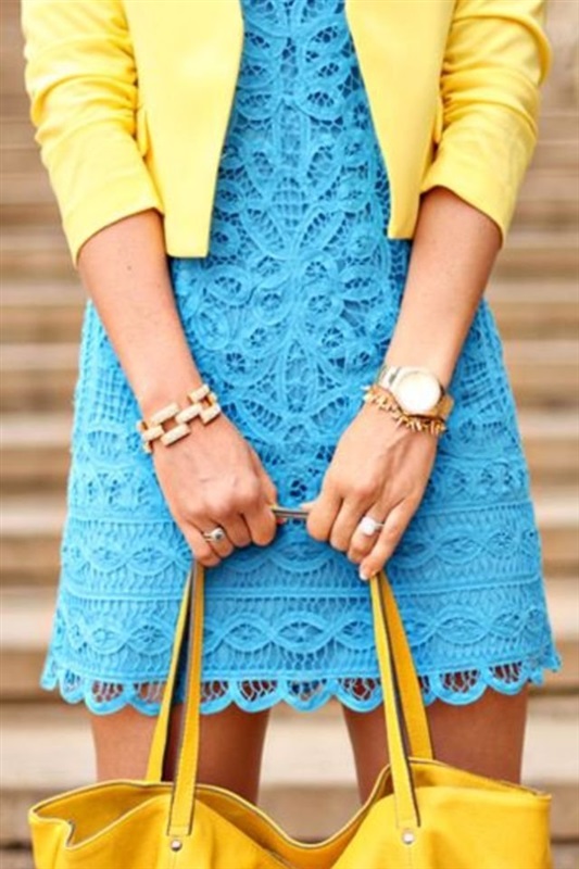 الأزرق مع الأخضر: الأزرق لون أساسي يتناسق مع الأخضر الذي يعتبر من الألوان الثانوية على دائرة الألوان. شاهدي في الصور إطلالات رائعة من الأزرق والأخضر ستهلمك لاختيار إطلالة مميزة وفريدة.