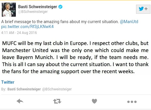 باستيان شفاينشتايجر نجم مانشستر يونايتد عن رغبته في البقاء مع الشياطين الحمر مؤكداً