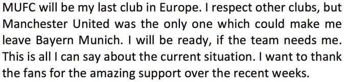 اليونايتد هو النادي الوحيد الذي كنت سأغادر بايرن لأجله، سأكون جاهزًا عندما يحتاجني