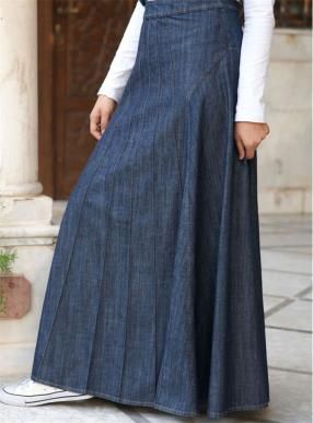 تسهل التنورة الجينز الطويلة على المحجبات مهمة اختيار الملابس للخروجات الصباحية والكاجوال. فبالتنورة الجينز تستطيع كل محجبة أن تحصل على أكثر من إطلالة رائعة ومختلفة. يمكنك ارتداء التنورة الجينز مع البلوزات ذات الأكمام الطويلة أو القميص الأبيض. أيضا القميص الكاروه والجواكيت القصيرة ستكون رائعة على التنورة الجينز خاصة إذا تم تنسيق معها حزام على الخصر. وأخيرا لا تنسي اختيار حذاء أنيق ذو كعب عال أو أحد الأحذية الرياضية لتميزي إطلالتك بالتنورة الجينز.