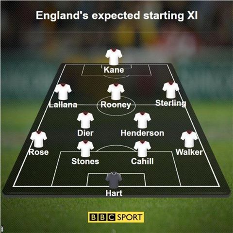 في حين سيكون في الدفاع كلا من والكر وكاهيل وستونز وروز. وسيكون في خط الوسط دير وهندرسون