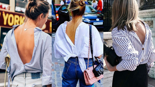نعم ارتداء القميص والأزرار في الخلف هذا شيء جديد، فكثير من المدونين والنجوم في الشارع ارتدوا القميص والأزرار في الخلف كثيرا. يبدو أنها صيحة رائجة وجديدة وستستمر لفترة. كل ما عليك فعله هو ارتداء القميص من الأمام إلى الخلف مع ترك قليل من الأزرار العلوية تكشف عن جزء من جسمك.