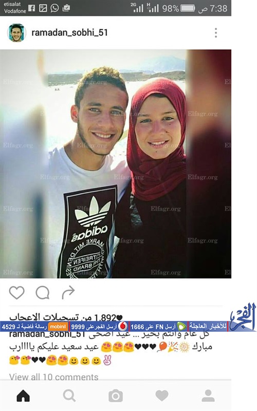 ونشر "صبحي"صورة تجمعه بخطيبته "حبيبة" عبر صفحته الشخصية على موقع التواصل الاجتماعي "إنستجرام" وعلق قائلا: "كل عام وأنتم بخير.. عيد أضحى مبارك.. عيد سعيد عليكم يارب".