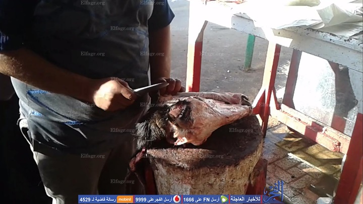 وعن تقطيع لحم الرأس، يقوم الجزار بسلخ وتشفية الجلد عن رأس الأضحية ثم يقوم بتكسيرها بساطور ثقيل لإخراج لحم الرأس والمخ وغيرها، حيث يحصل علي 50 جنيه مقابل تشفية رأس الخروف و100 جنيه مقابل رأس العجل.