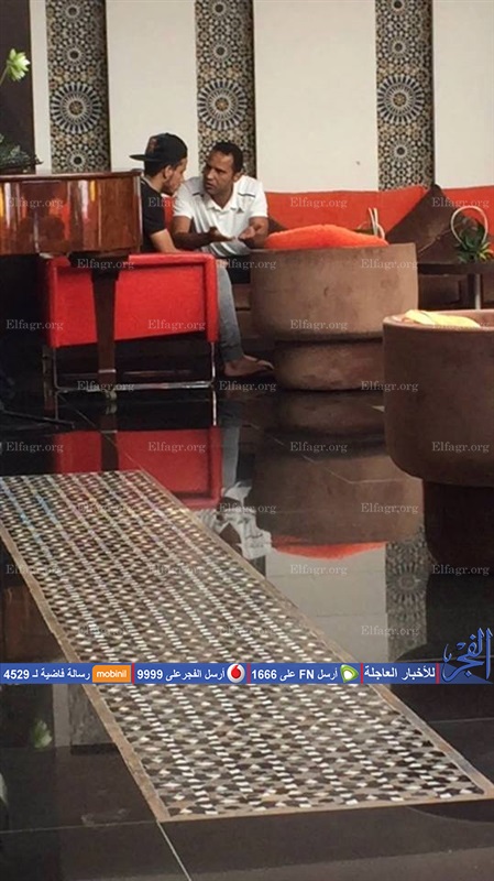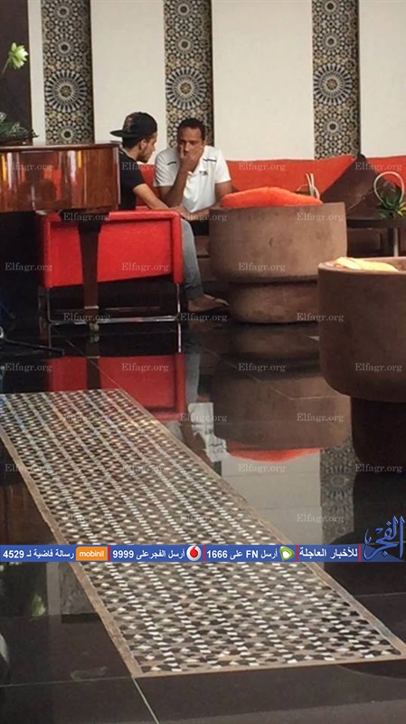 عقد مؤمن سليمان المدير الفني للزمالك مع مصطفى فتحي لاعب الفريق جلسة في بهو الفندق الذي تقيم فيه بعثة الفريق بالرباط