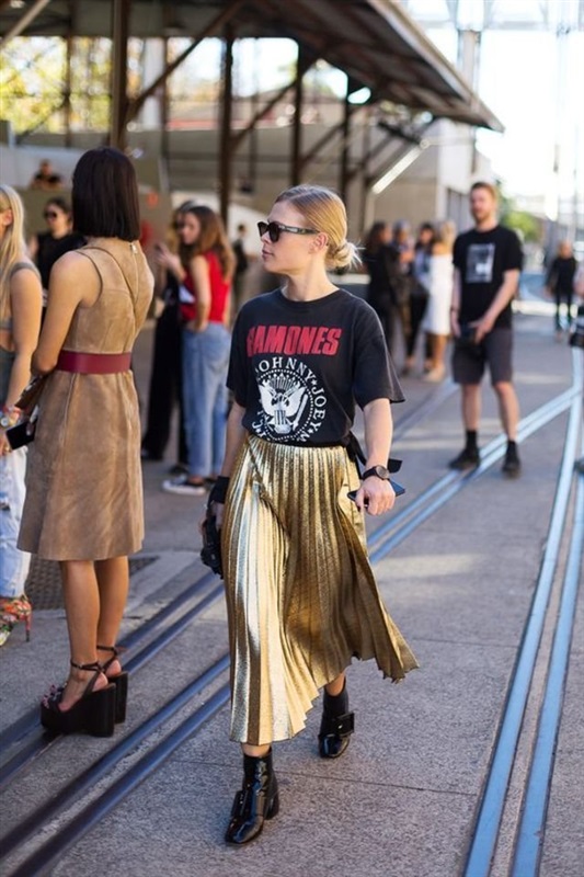 وإذا كنت تتطلعين إلى ارتداء التنورة البليسيه بأحدث صيحات الموضة، جربي ارتداء واحدة منهن ميتالك خلال النهار.