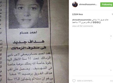 نشر أحمد حسام "ميدو" نجم الزمالك ومنتخب مصر السابق صورة لخبر بإحدى الصحف، خاص باحرازه 13 هدفا مع الزمالك بصفوف فريق الناشئين بنادي الزمالك تحت 14 سنة، رغم أن عمره كان لم يتجاوز الـ12 عام حينها.