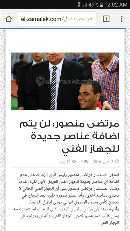لنادي الزمالك قاموا بحذف الخبر وإضافة خبر آخر بتصريحات لرئيس النادي مرتضى منصور