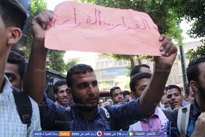 ورفع الطلاب لافتات كتب عليها: "التعليم التعليم"، و"التمرض عاوز يتعلم"، و"مش هنمشي هو يمشي"، مطالبين بإقالة وزير التعليم العالي.