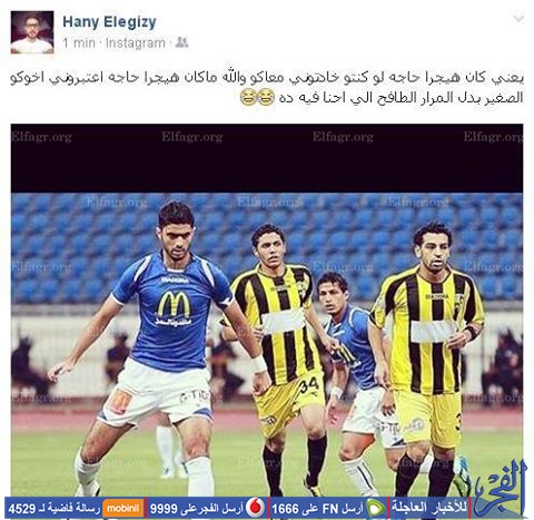 نشر هاني العجيزي لاعب سموحه صورة تجمعه بمحمد صلاح لاعب روما والنني لاعب أرسنال، علي صفحته الشخصيه بموقع فيس بوك.