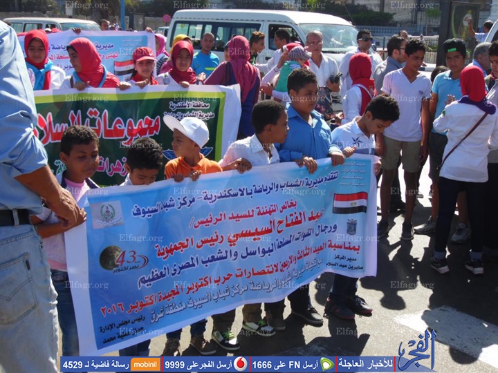 وقد قام الأهالي برفع صور الرئيس محمد أنور السادات وبعض الصور الخالدة لأبطال الحرب، ورفع العديد من الأعلام المصرية وترديد الأغانى الوطنية إبتهاجًا بذكرى النصر.