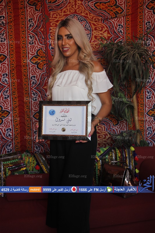 وعلى هامش الندوة تم تكريم الإعلامية التونسية "ليلى شندول" من جريدة "الفجر" عن برنامجها المتميز "هي" وما يقدمه من جديد للمرأة المصرية.