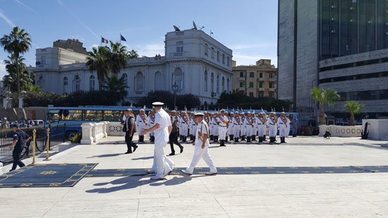 الزهور أمام نصب الجندى المجهول فى الإسكندرية.