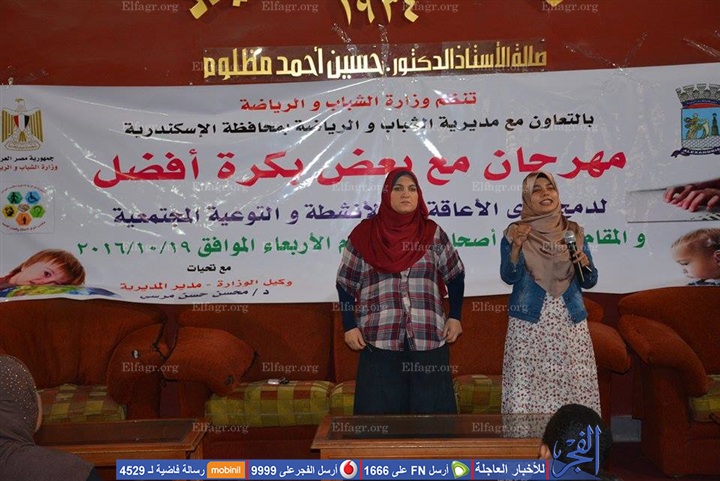 بدأت وزارة الشباب والرياضة، اليوم الأربعاء، فعاليات الحملة القومية لتوعية المجتمع بقضية ذوى الإعاقة تحت شعار "مع بعض بكرة أفضل"، وذلك بنادي أصحاب الجياد بالإسكندرية.