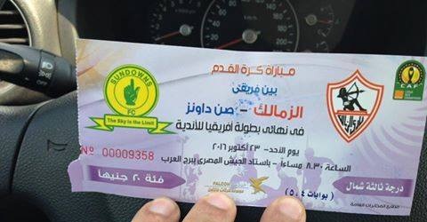 صورة .. شاهد تذكرة مباراة الزمالك وصن داونز