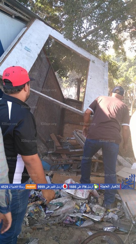 كما قامت الحملة بإزالة عدد من الأكشاك والباترينات والسقائف والتند غير المرخصة من أمام حديقتي الحرية وجمال عبد الناصر.