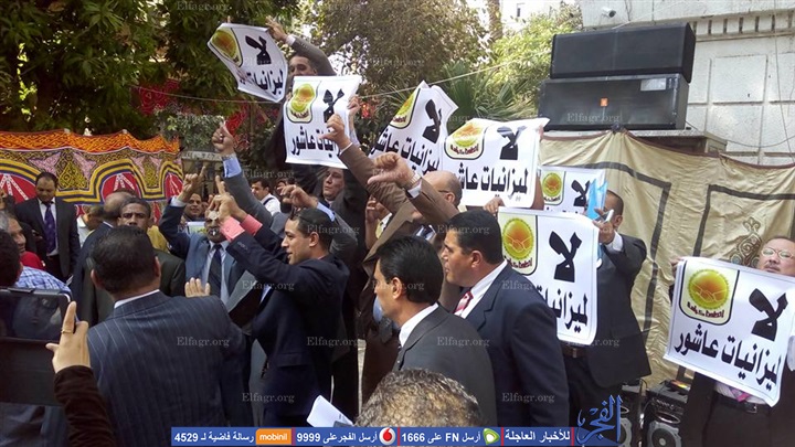نظم عدد من المحامين تحت ما يسمى حملة "لا لميزانيات عاشور"، وقفة احتجاجية، اليوم الأحد، في أثناء انعقاد الجمعية العمومية لزيادة المعاشات وإقرار الميزانيات، بالنقابة العامة للمحامين.