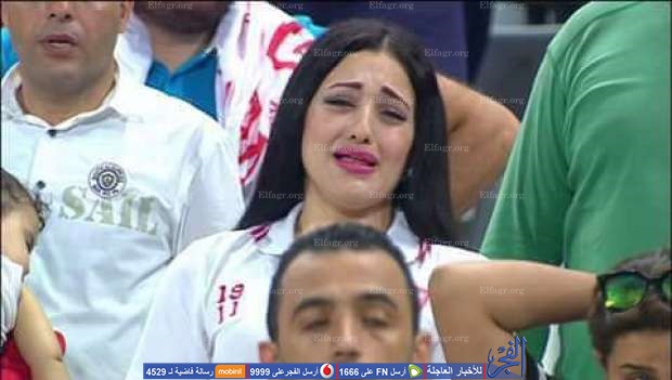 نهاية المباراة وهي تشجع الزمالك بعزيمة كبيرة للغاية مع كل لقطة.