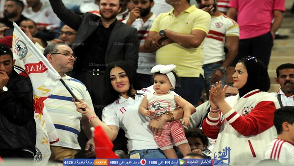 مباراة الزمالك وصن داونز الجنوب أفريقي، على احدي الفتيات بقوة خلال اللقاء الذي