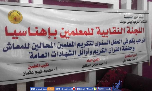 "مُعلمين إهناسيا" ببني سويف تكرم المتفوقين وحفظة القرآن (صور)