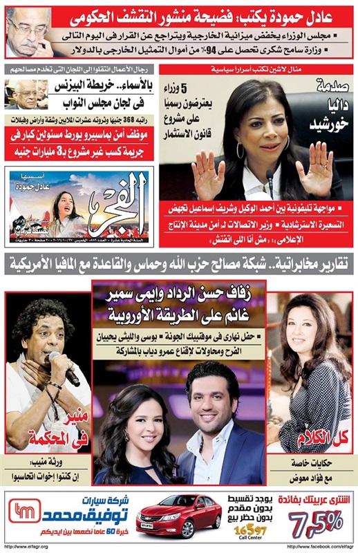 عدد الفجر الجديد : عدد مميز بادر بحجز نسختك العدد الأسبوعي الأربعاء 26/أكتوبر/2016 - 11:07 ص 10/26/2016 11:07:00 AM عدد الفجر الجديد : عدد مميز بادر بحجز نسختك عدد الفجر عادل حمودة جريدة الفجر الورقية جريدة الفجر الاسبوعية العدد الورقى العدد الاسبوعي