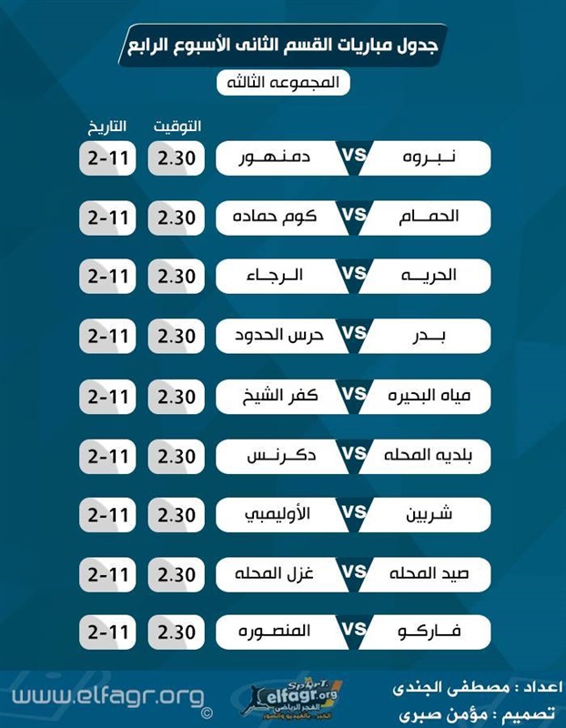 9 مباريات ساخنة في المجموعة الثالثة بالقسم الثاني غدا (انفوجرافيك)