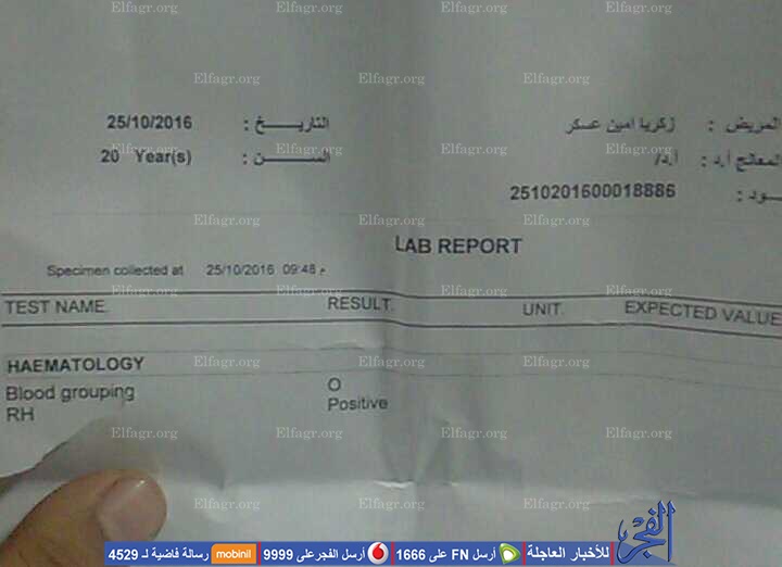 وأوضح شقيقه، محمد أمين، أن حالته تدهورت عقب إجراء العملية وتم وضعه في العناية المركزة فاقدًا للوعي وتعرض لفشل كلوي بسبب الدم الخاطئ، موضحًا أن طلب الشراء من مستشفى الطوارئ مكتوب فيه الفصيلة الخطأ A موجب، وأن بنك الدم بالمستشفى الفرنساوي، وصرفوا الدم بناءً على تحليل مستشفى الطوارئ بدون توافق مما تسبب في تدهور حالته.