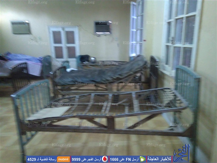 كما تلاحظ وجود عدد 2 سرير ترولي لم يتم استخدامها وملقاة على الارض ومعرضة للتهالك بسبب عوامل الطبيعة، وبمعاينة الغرفة الداخلية للاستقبال بالمستشفى وجد بها حمام صغير وجهاز صدمات كهربائية ملقى على قاعدة الحمام، والحالة العامة للنظافة سيئة، كما تبين أن غلق بنك الدم بالمستشفى وبالسؤال عن نوبتجي بنك الدم أفاد مدير المستشفى عن عدم وجوده وأنه يتم استدعائه حال وجود أي حالة تحتاج لدم.