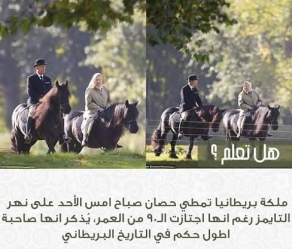 بريطانيا صورة للملكة اليزابيث الثانية، وهي تضع الحجاب أثناء ركوبها الخيل.
