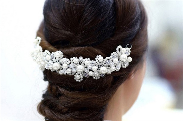 إطلالة أنيقة من اللؤلؤ لتزيين شعر العرائس لربيع 2016 (صور)