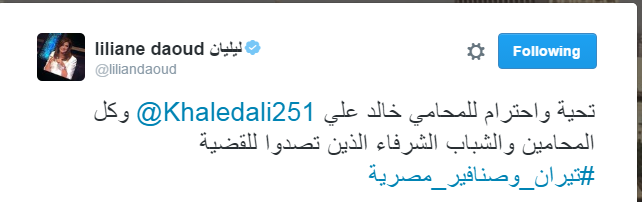 ليليان داوود عن تيران وصنافير: تحية للمحامي خالد علي وكل المحامين الشرفاء