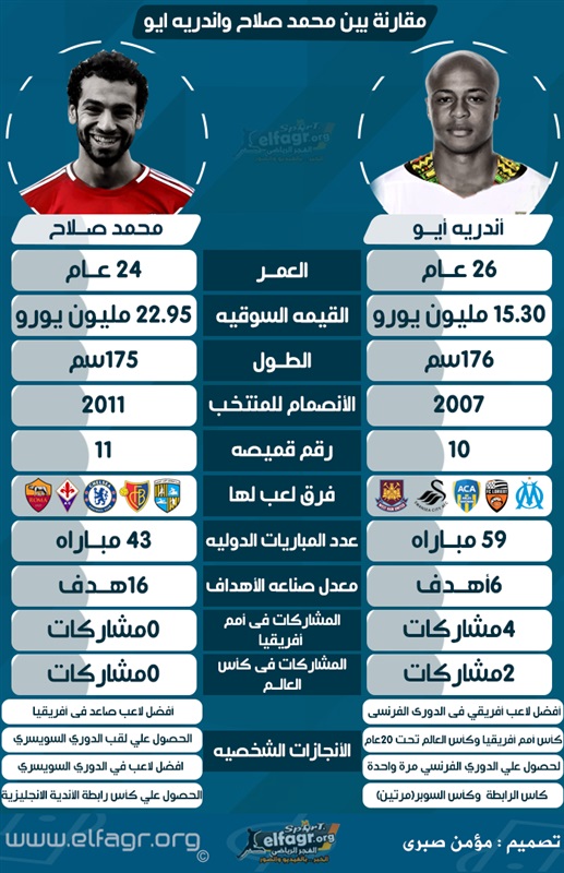 11 معلومة عن محمد صلاح وأندريه أيو قبل موقعة مصر وغانا (انفوجراف)