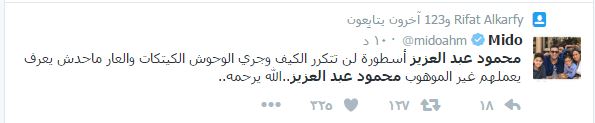 ميدو عبر صفحته الرسمية على موقع التدوينات المصغرة "تويتر": "محمود