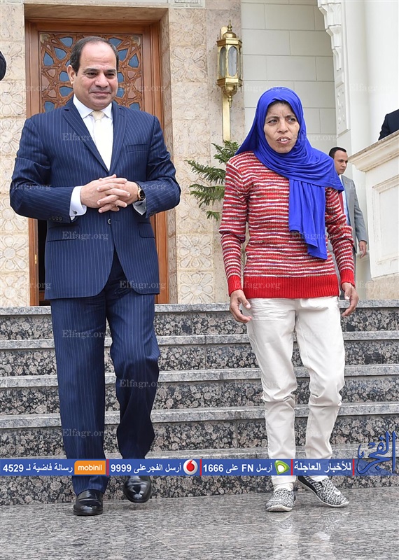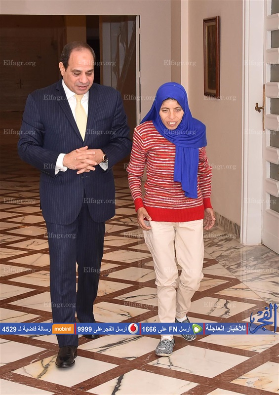 استقبل الرئيس عبد الفتاح السيسي، اليوم، منى السيد إبراهيم بدر - صاحبة صورة جر عربة البضائع بالإسكندرية - حيث أعرب الرئيس عن سعادته بالالتقاء بها بعدما شاهد بإعجاب شديد كفاحها وإصرارها على تحقيق واقع أفضل لها ولأسرتها.