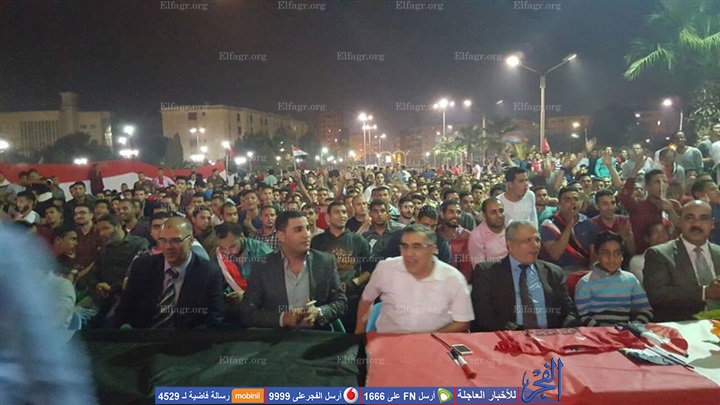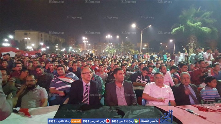 المئات من طلاب جامعة الفيوم يشاركون في مبادرة "يلا نشجع منخبنا الوطني" (فيديو وصور)