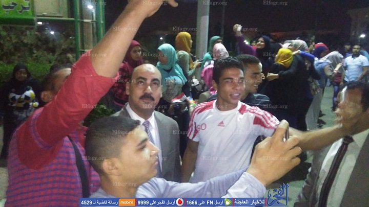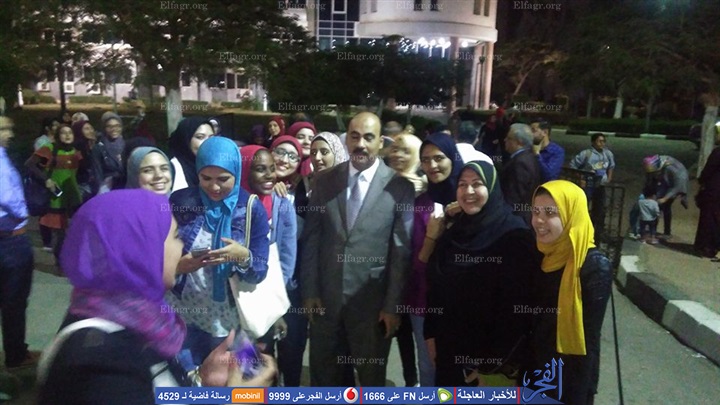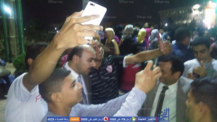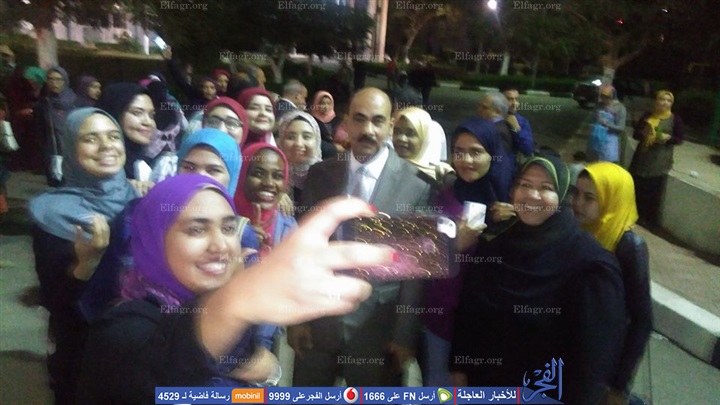 طلاب جامعة الفيوم يلتقطون "سيلفي الفوز على غانا" مع رئيس الجامعة (فيديو وصور)