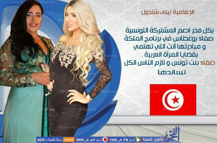 وأعلنت ليلى، دعمها لـ "صفاء بو غطاس" من خلال صفحتها الرسمية على موقع التواصل الإجتماعي "فيس بوك" حيث كتبت " بكل فخر أدعم التونسية صفاء بو غطاس ببرنامج الملكة ومبادرتها أنتي التي تهتمي بقضايا المرأة العربية، صفاء بو غطاس بنت تونس ولازم الناس كلها تساندها".